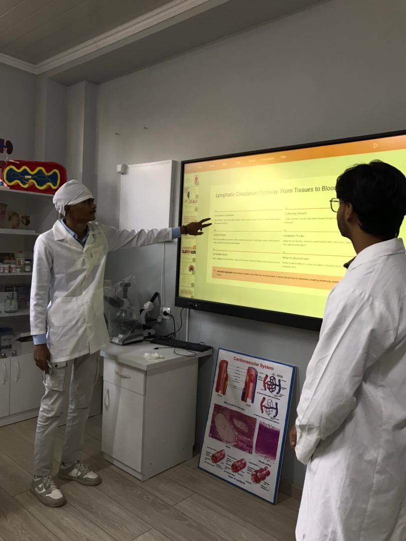 Темой занятия стала «Physiology of respiration. Pulmonary ventilation». Урок проходил в группе ЛД5-2-2024 (А). В ходе занятия студенты изучили основные механизмы дыхания, этапы вентиляции лёгких и значение физиологических процессов, обеспечивающих газообмен в организме человека.