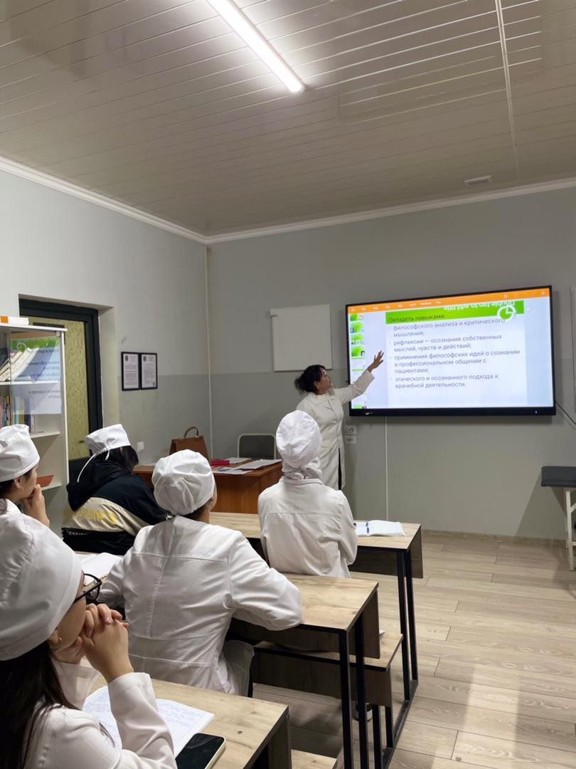 20.10.2025г. в рамках декады открытых уроков в Ошском международном медицинском университете преподаватель, к.ф.н. Юсупова Рита провела открытое занятие для студентов группы ЛД6-1-24.